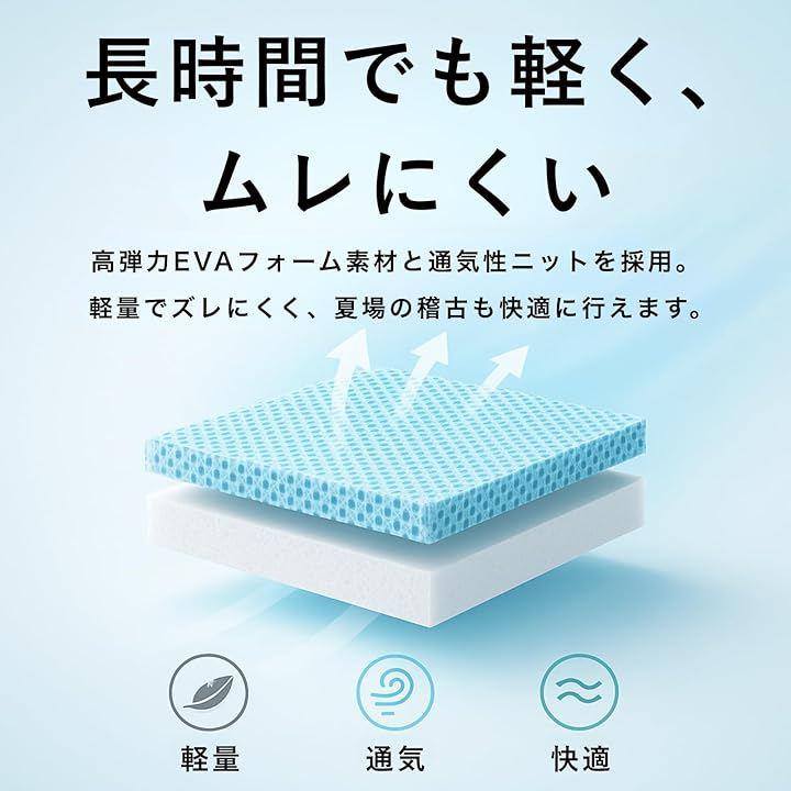 「清潔に使える洗える設計」 吸汗性の高い生地とEVAフォームの一体型構造により、洗濯ネットに入れて簡単に洗える設計です。