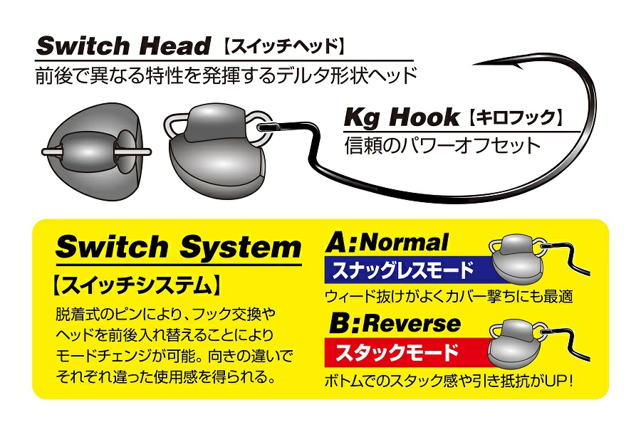 脱着可能なアイを備えた「スイッチヘッド」にオフ