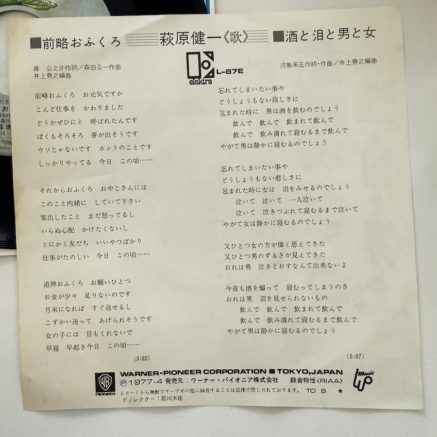 Kenichi Hagiwara - Dear Mother, Sake, Tears, Men and Women, Showa Era Vintage EP Record 7-inch Single Extended Play
