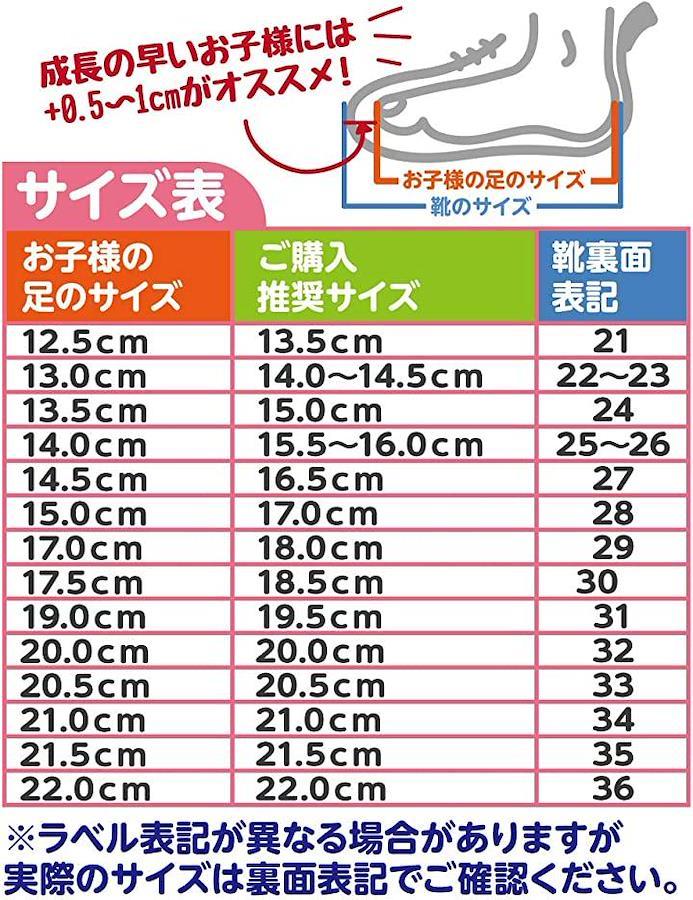 成長の早いお子様用に1サイズ大き目がおすすめ。