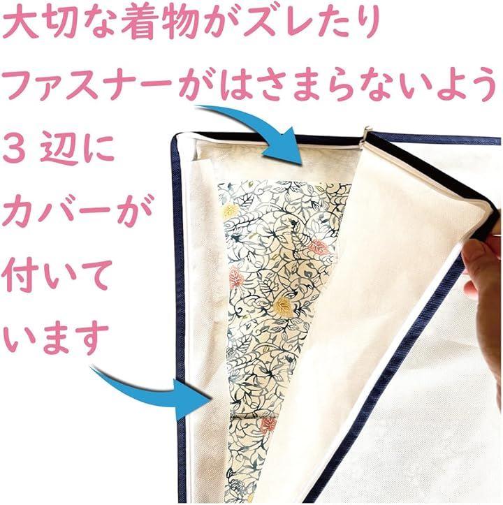 「着物をファスナー巻き込みからガード」開け閉めしやすい大きなダブルファスナーで、3辺が開くので着物がずれにくく取り出しやすい。