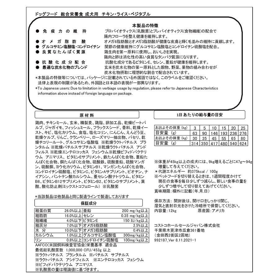 カークランドシグネチャー 成犬用 12kgKirkland Signature Dog Food Adult 12kg Chicken, Rice, Vegetable