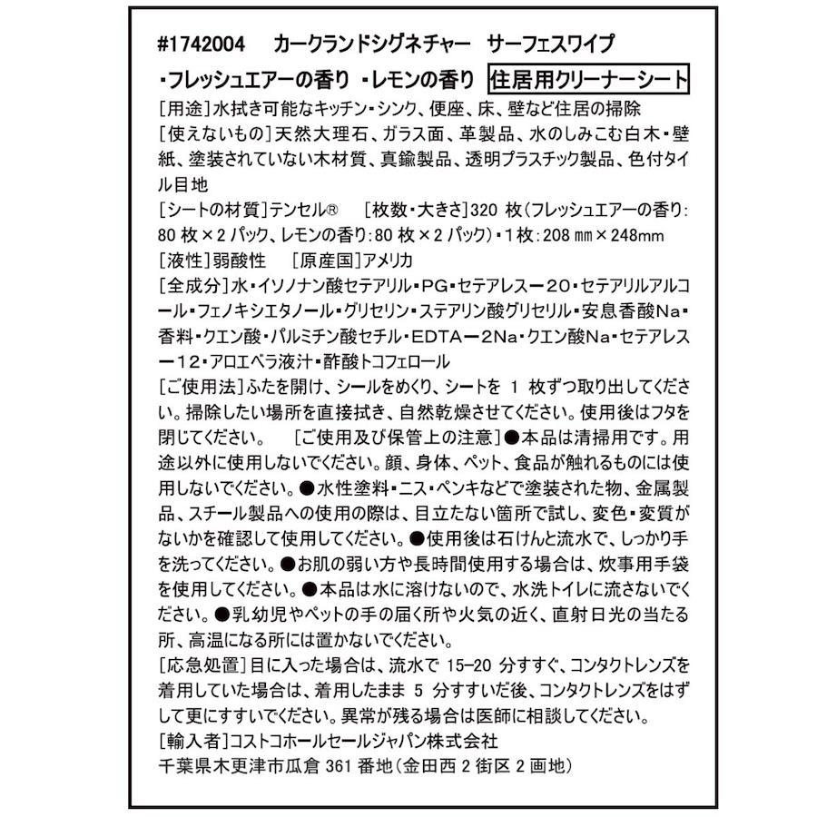 カークランドシグネチャー サーフェイスワイプ 4袋Kirkland Signature Surface Wipe 4 packs