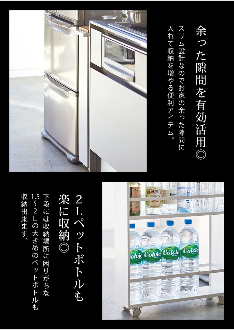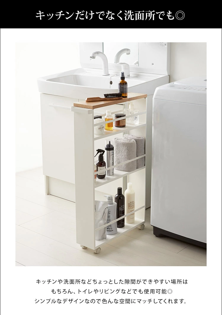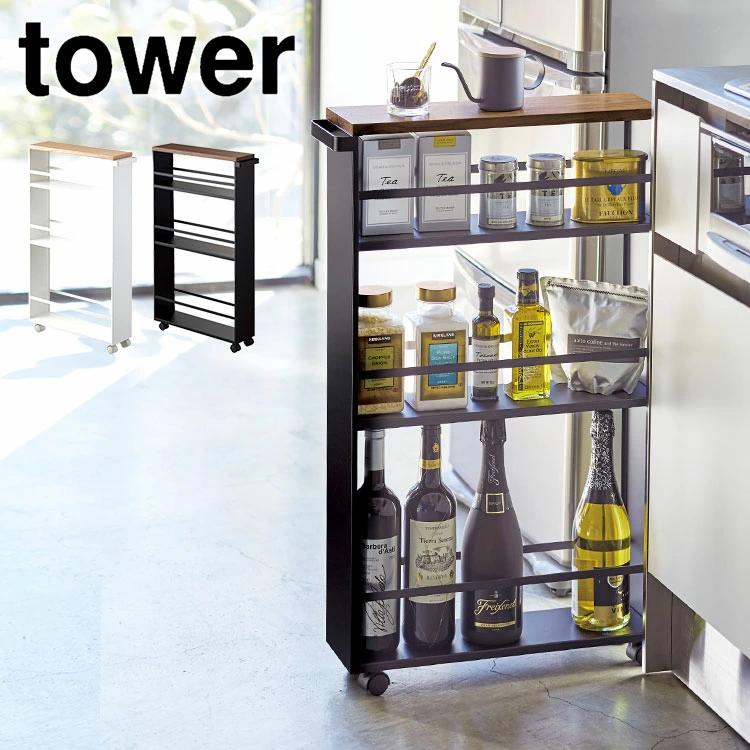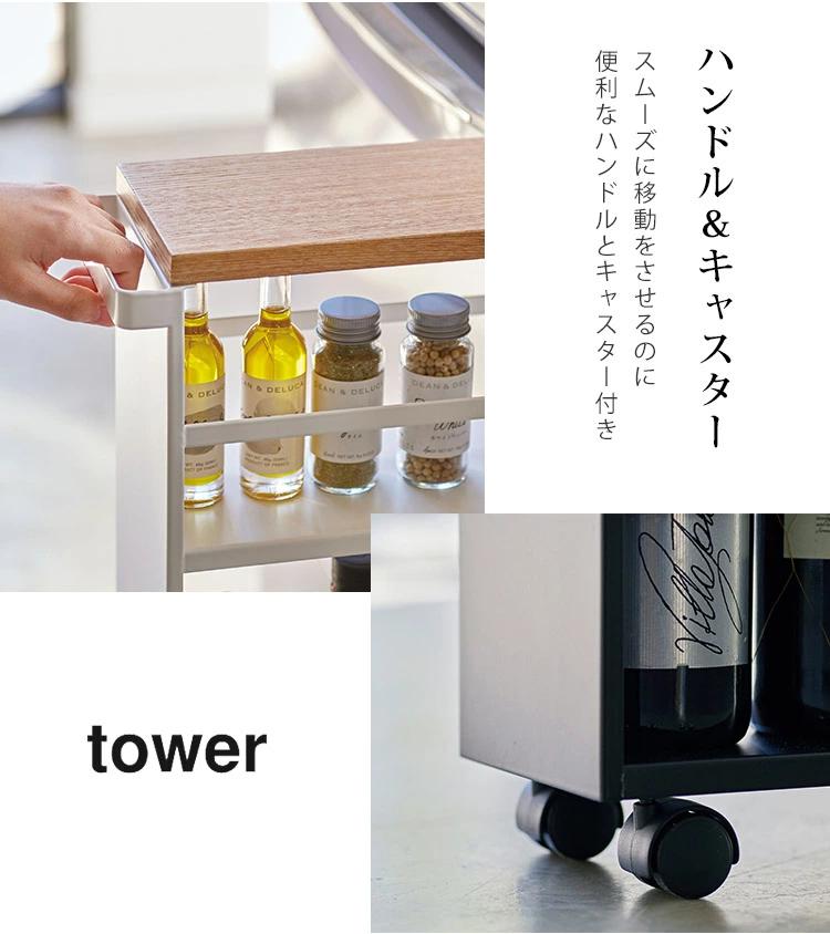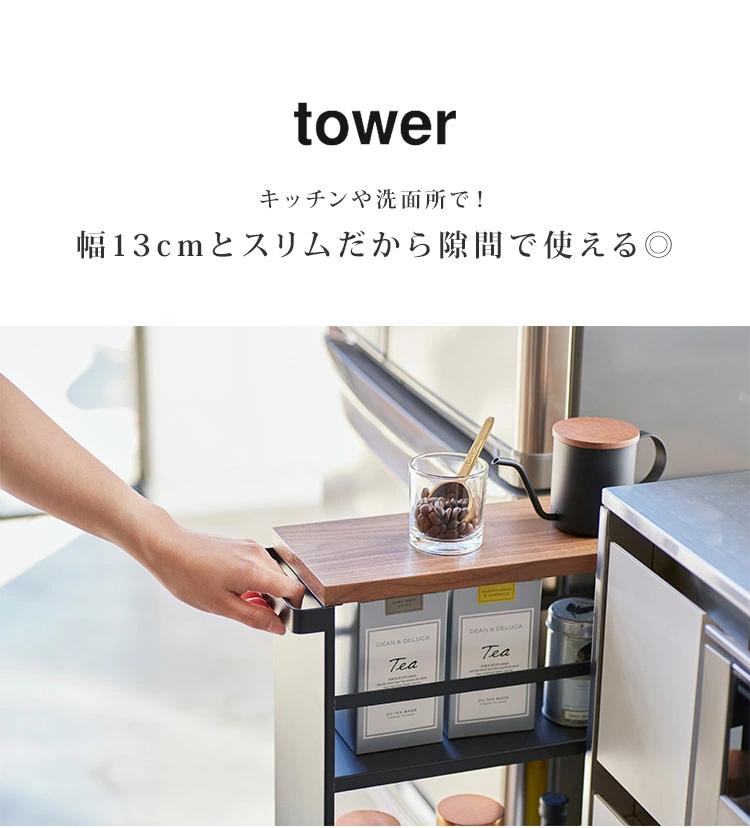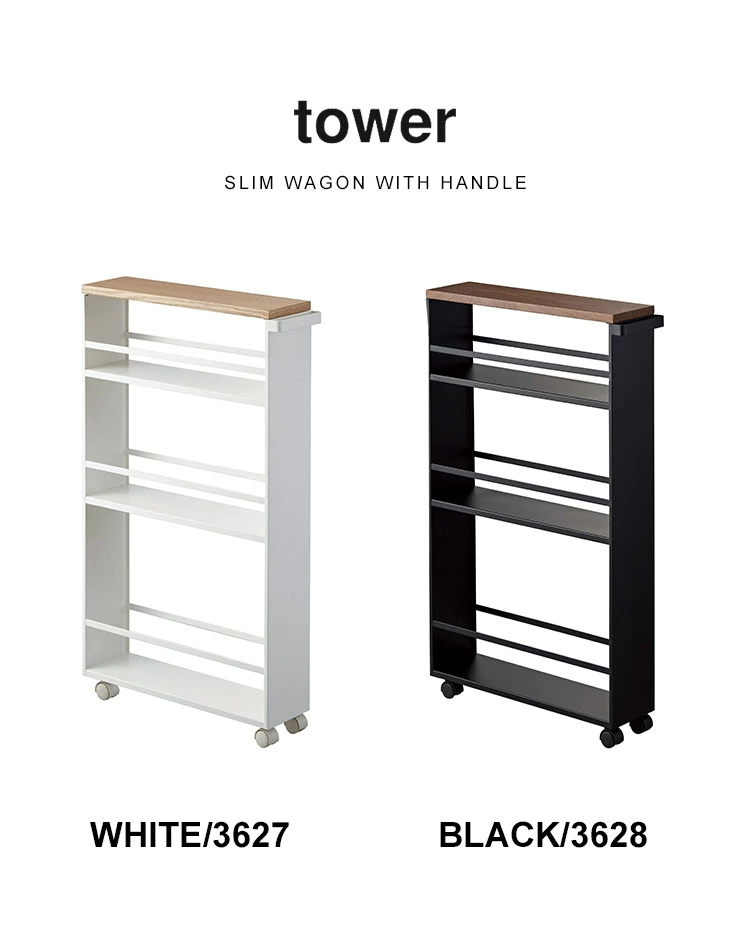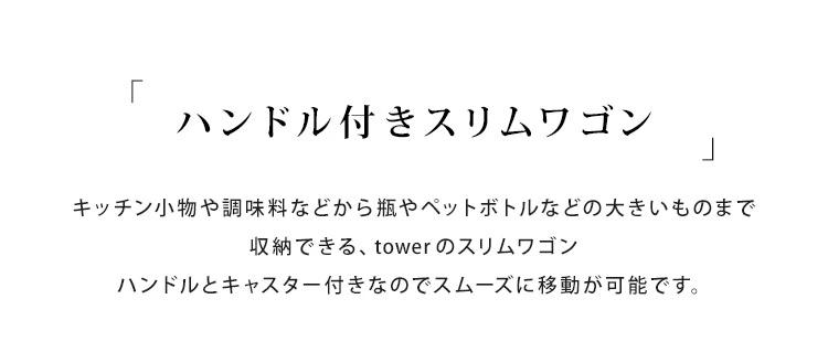 【ハンドル付きスリムワゴン】丁寧な暮らしをするおしゃれさんたちにお届けする、シンプルながらもアイデアのつまったtowerシリーズ。幅13cmとスリムだから隙間で使える!ハンドル付きスリムワゴンキッチン小物や調味料などの小さいものから瓶やペットボトルなどの大きいものまで収納出来る優れもの◎キャスターとハンドル付きなので移動もスムーズに行えます。癖のないデザインなので、キッチンだけでなくランドリールームなど色んなお部屋で使用することも出来ますよ♪
