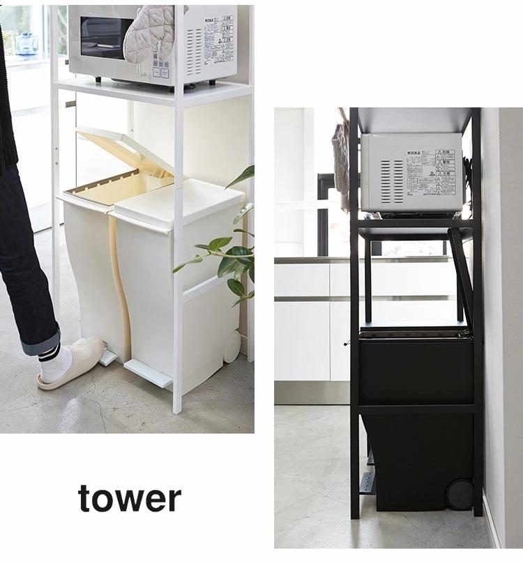 【ゴミ箱上ラック】丁寧な暮らしをするおしゃれさんたちにお届けする、シンプルながらもアイデアのつまったtowerシリーズ。ゴミ箱の上も有効に使えるようにしてくれるtowerのゴミ箱上収納ラック。ゴミ箱の他にもキッチンカートの収納場所としてなど隙間に合ったものを収納することをオススメします。