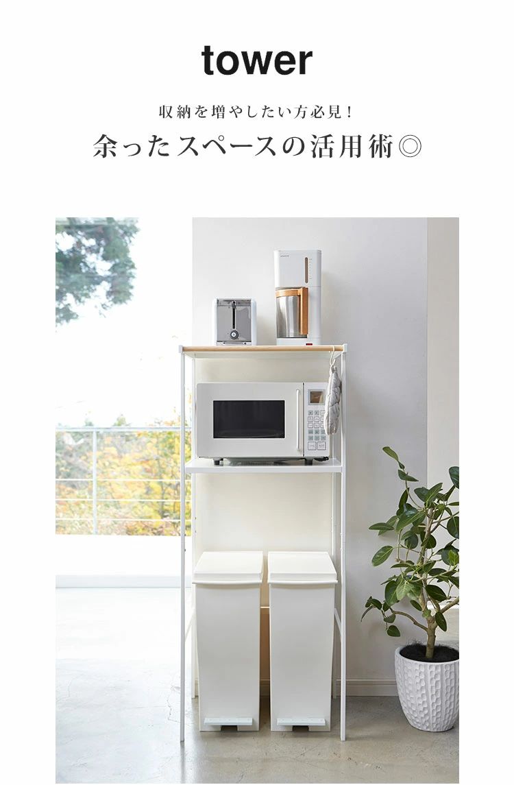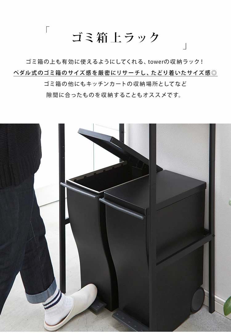 【ゴミ箱上ラック】丁寧な暮らしをするおしゃれさんたちにお届けする、シンプルながらもアイデアのつまったtowerシリーズ。ゴミ箱の上も有効に使えるようにしてくれるtowerのゴミ箱上収納ラック。ゴミ箱の他にもキッチンカートの収納場所としてなど隙間に合ったものを収納することをオススメします。