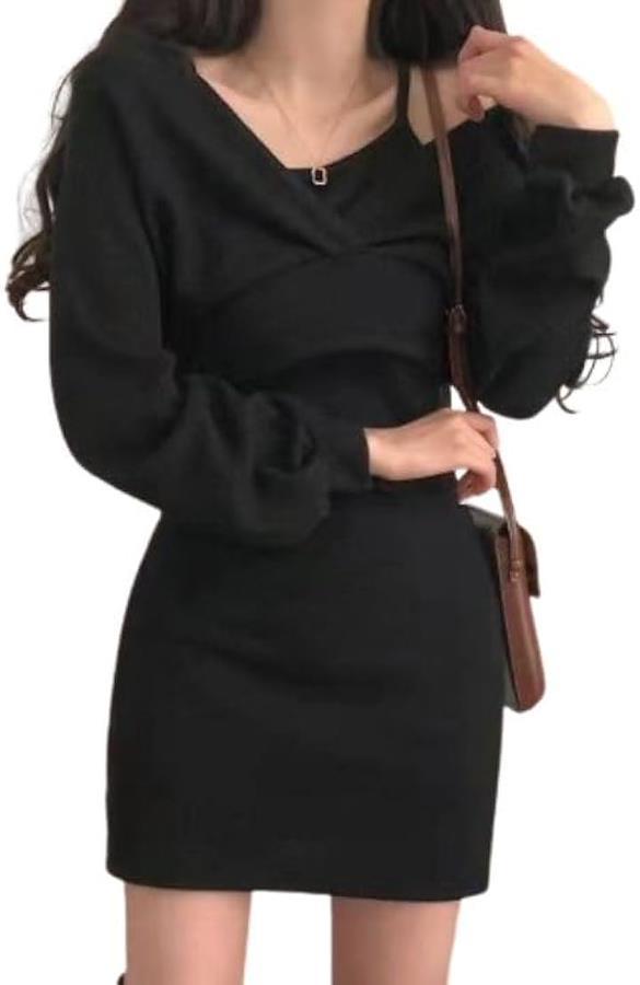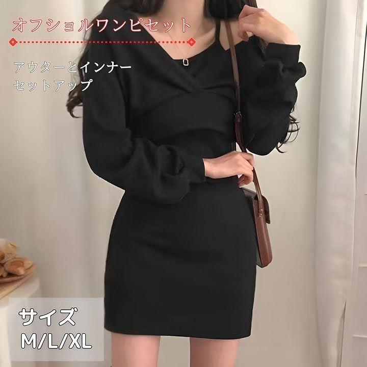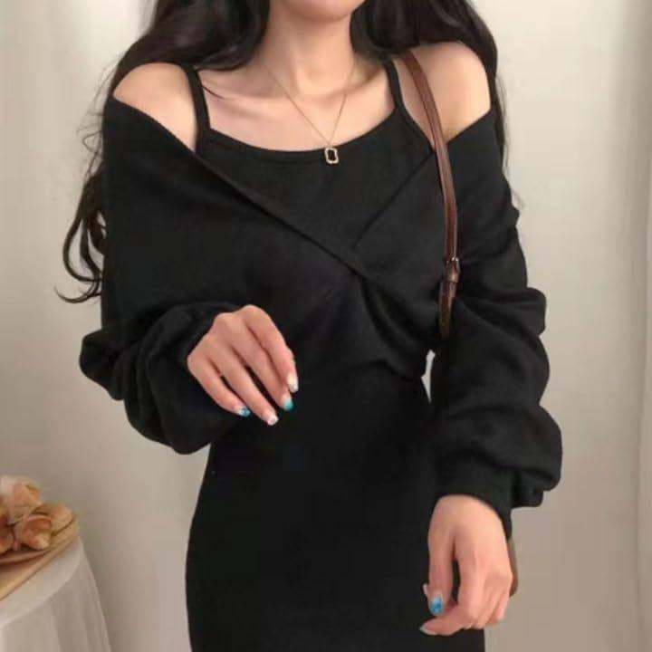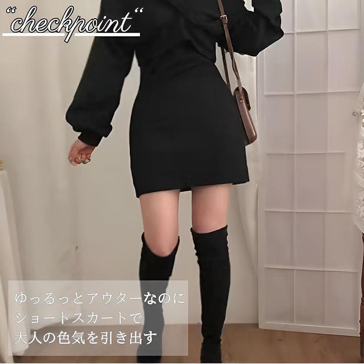 *セットアップで着回し自由自在 全体的にゆったりとしたルーズなシルエットのニットと、タイトなミニワンピの2点セットです。