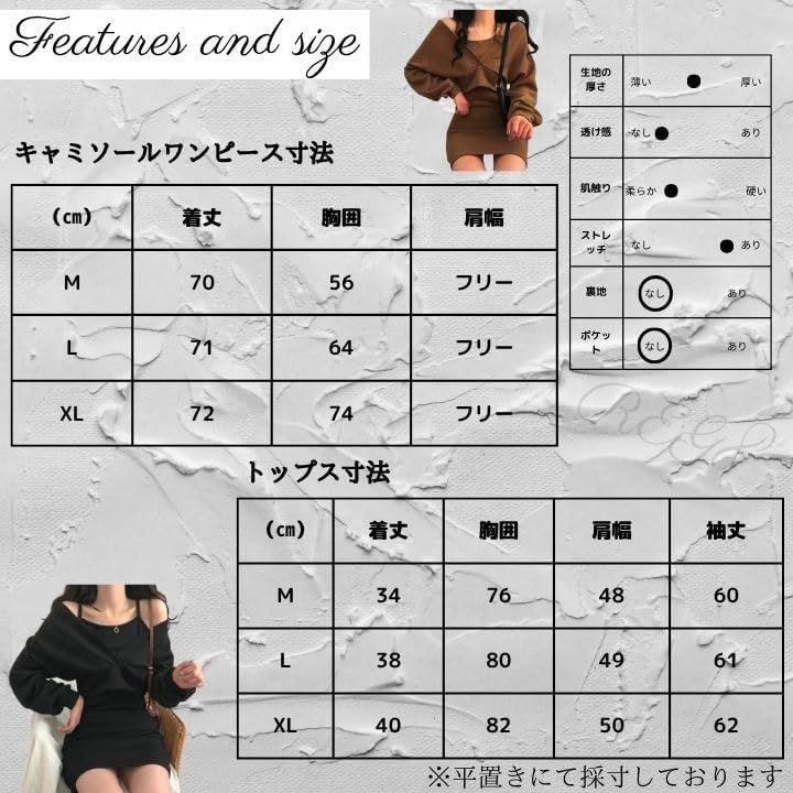 (キャミワンピ) M:着丈70cm/胸囲56cm/肩幅フリー L:着丈71cm/胸囲64cm/肩幅フリー XL:着丈72cm/胸囲74cm/肩幅フリー