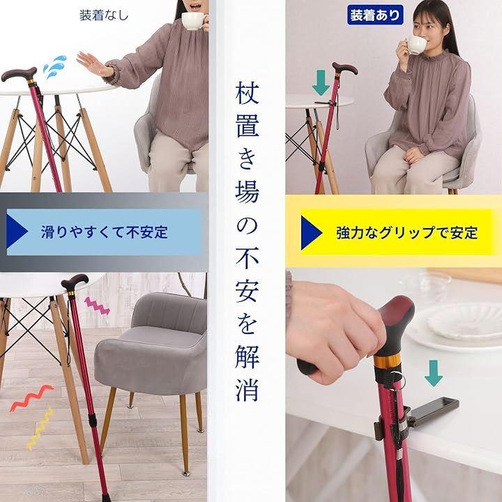 杖を机やカウンター、車椅子にも引っ掛けられ、日常生活をサポートします。