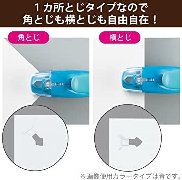 ●針を使わずに紙をとじることができる針なしステープラー「ハリナックス」の5枚とじタイプです。●手のひらサイズのハリナックスが、新設計刃になってさらにスムーズに使いやすく! 今までより約20%(※5枚とじ時、当社比)軽い力でとじることができます。●握りやすいレバー形状で、自然な楽な持ち方で「親指押しとじ」、「握りとじ」の2通りでとじる事ができます。●とじ穴の形は、とじた際にはずれにくい矢印刃になっていて、はずれにくくなっています。●紙をとじる際に針を使わないので、針補給の必要が