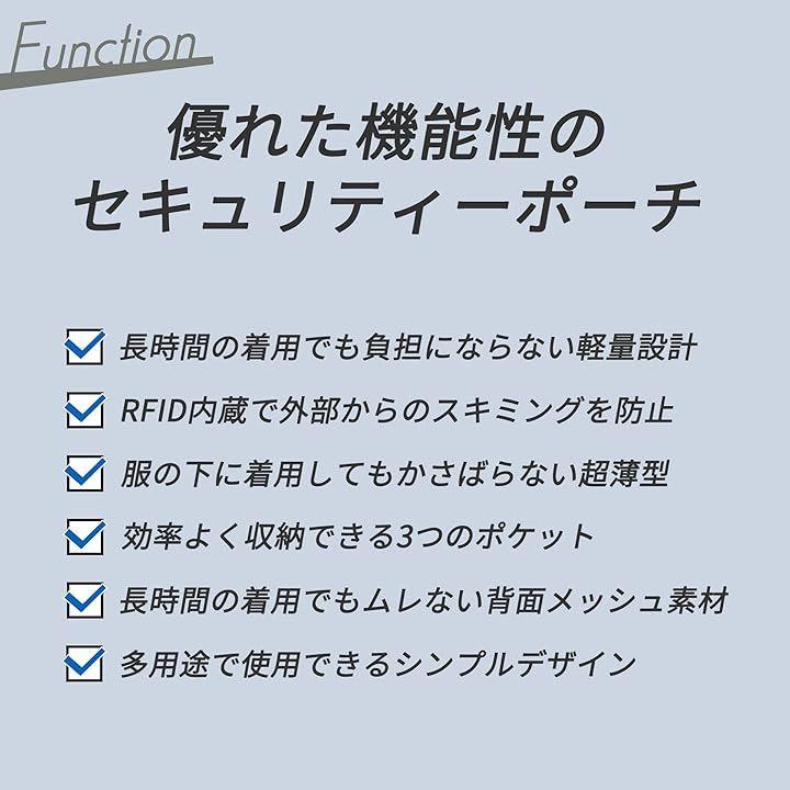「スリ対策」隠しポーチとしての機能を持ち、衣服の下に装着することでスリからの被害を防ぎます。