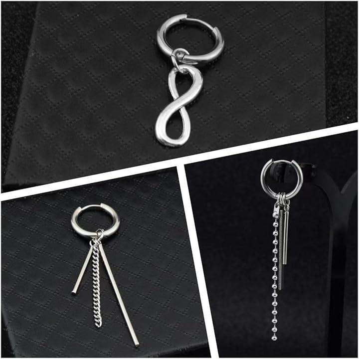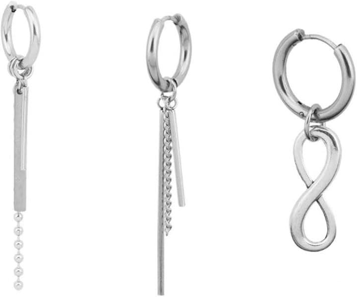 Korean earrings, 3-piece set, popular design, ring, hoop, chain, Korean fashion, men's, women's