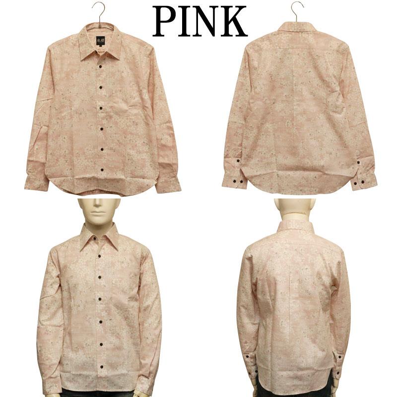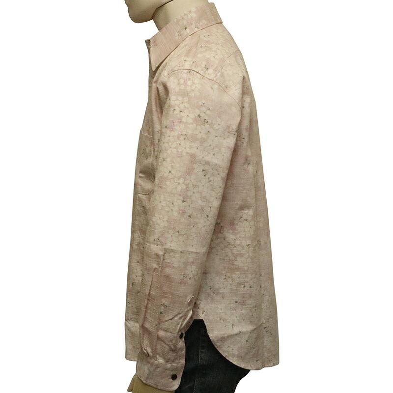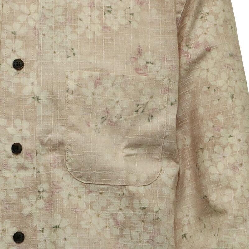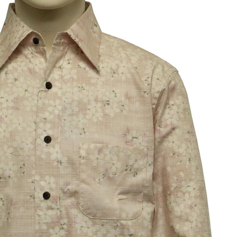 定番の桜柄を裏地使いし総柄であしらった長袖シャツ。