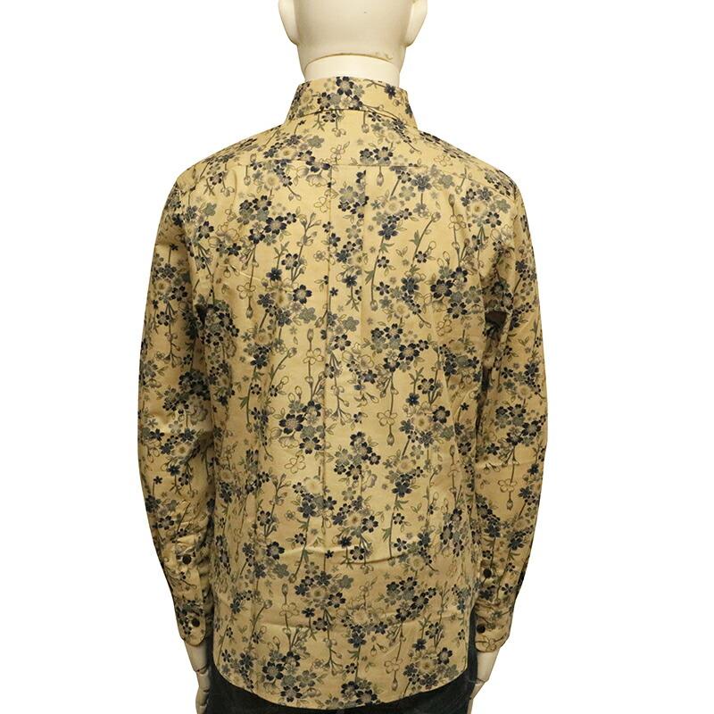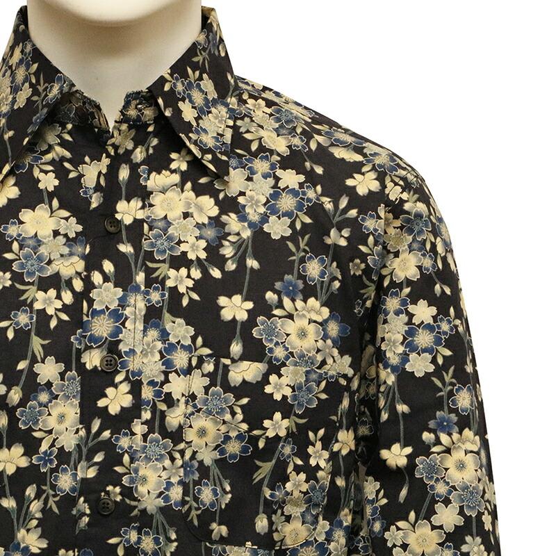 枝垂桜 柄 シーチング生地 和柄 長袖 レギュラーシャツ