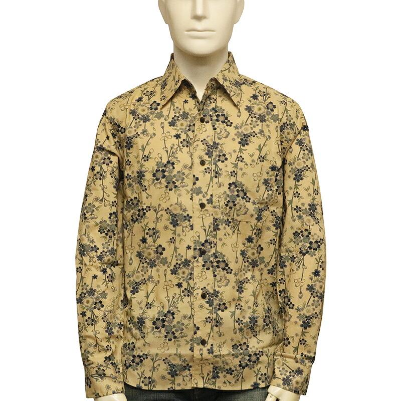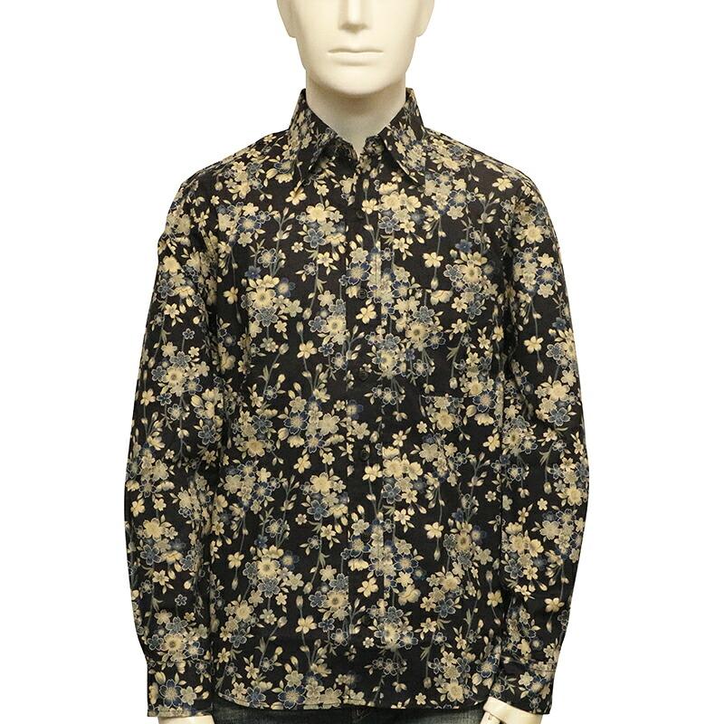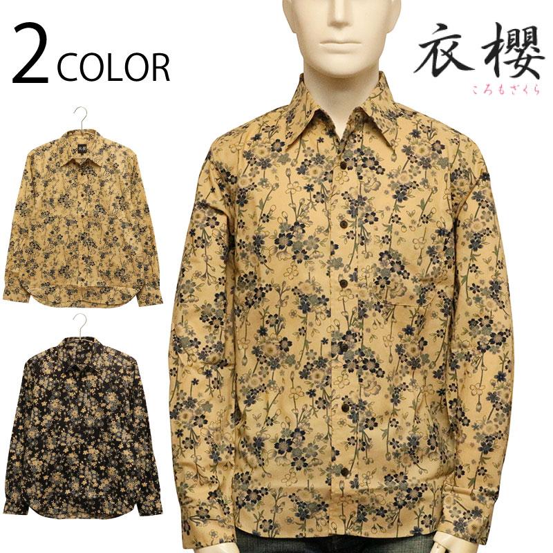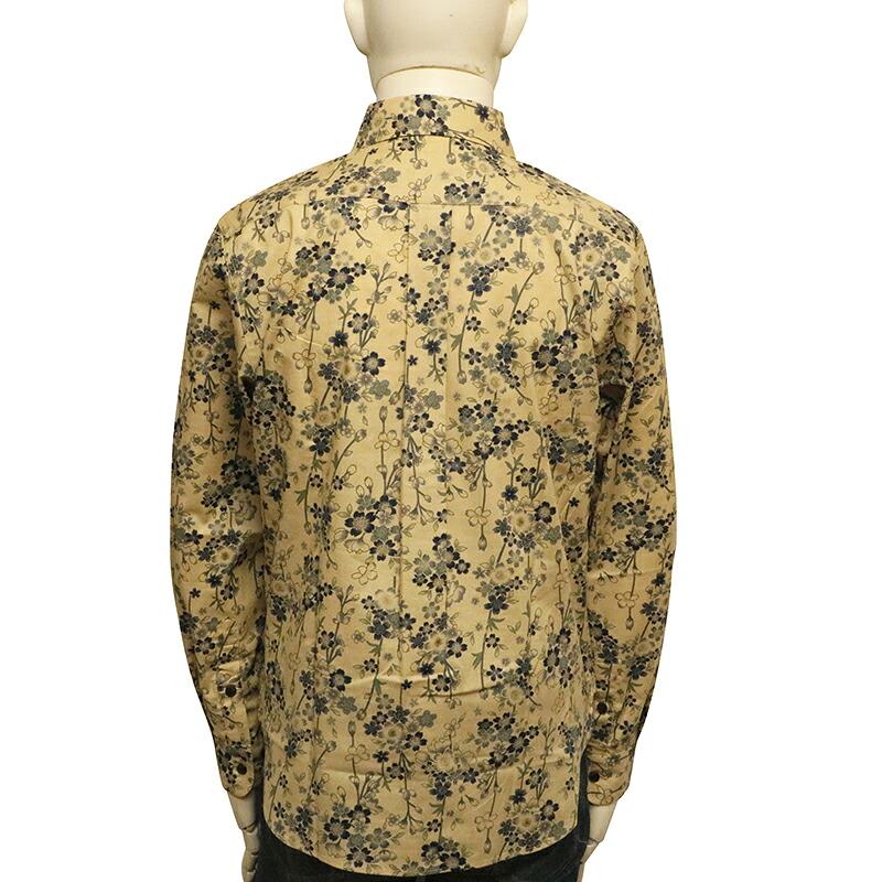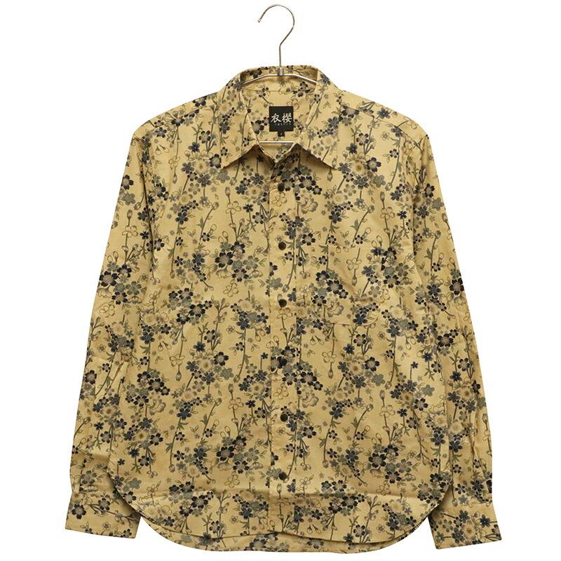 枝垂桜 柄 シーチング生地 和柄 長袖 レギュラーシャツ