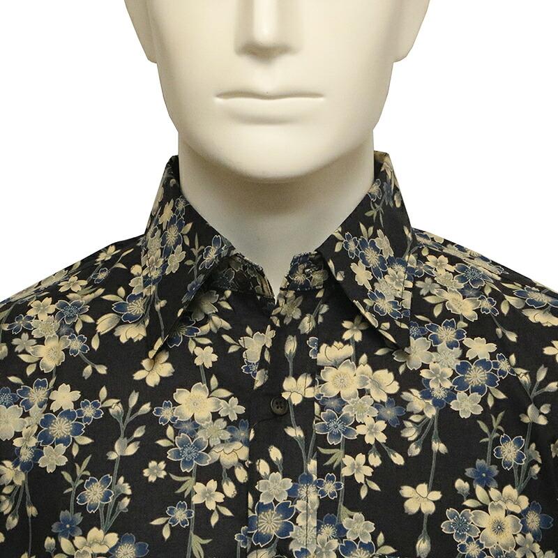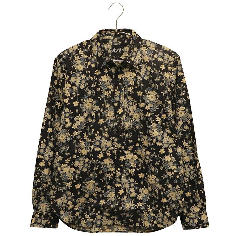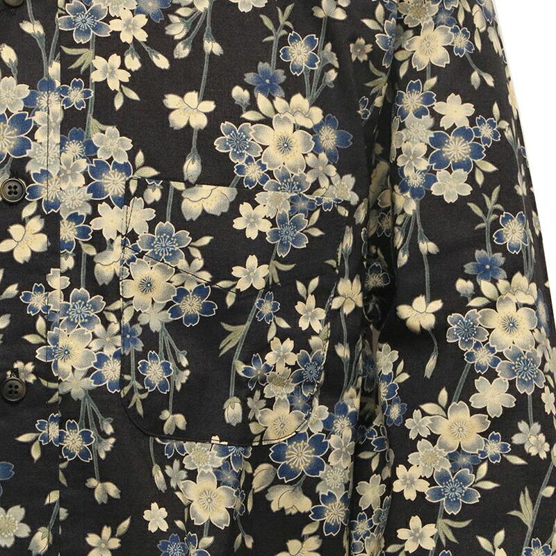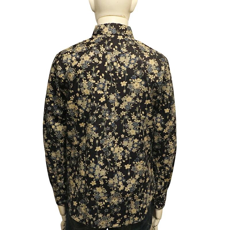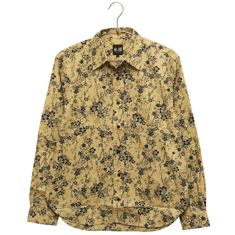 枝垂桜 柄 シーチング生地 和柄 長袖 レギュラーシャツ
