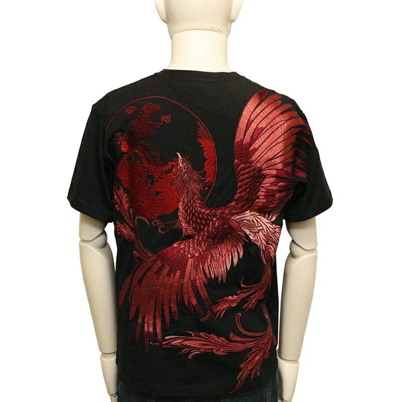 【商品名】鳳凰降臨 柄 刺繍 半袖Tシャツ