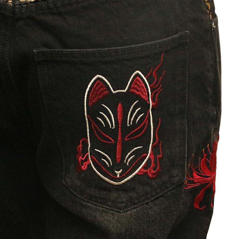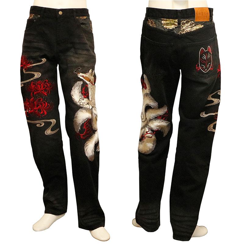 九尾の狐 柄 刺繍 和柄 デニムパンツ
