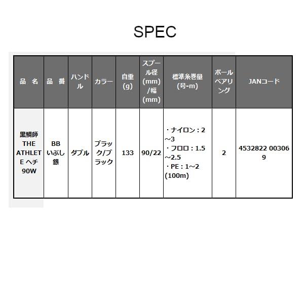 自重:133g / ギア比:1:1カラー:ブラック/ブラックスプール径/スプール溝(mm): 90/22標準巻糸量(100m): (ナイロン)2~3号 / (フロロ):1.5~2.5号 / (PE):1.0~2.0号ボールベアリング:2 (セラミックボールベアリング搭載)