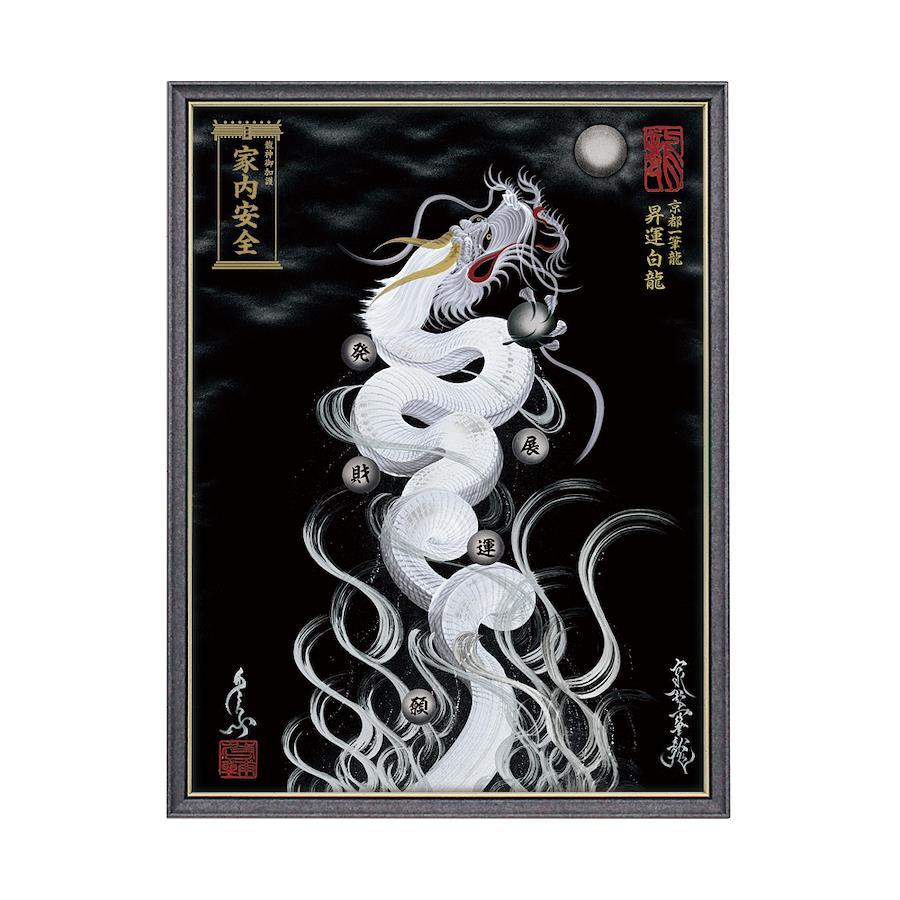 【商品の特徴】・京都一筆龍描画の種類/色彩は【26種】よりお選びいただけます<昇運龍14種(双龍5種/1体龍9種)> <守護龍10種(双龍2種/1体龍8種)> <縁結び龍2種(双龍2種)>・『京都一筆龍の御加護/御利益の象徴=胴体部分を一切途切れさせず一筆で描く動画』のQRコード印字ステッカー(2色/4サイズ)を同封お納めいたしております・描画に記載可能なお願い事は6種のご祈願内容より御選定いただけます心願成就/事業繁栄/金運上昇/健康祈願/家内安全/良縁成就・国内生産の高級額縁(デッサン額)を使用。額縁の色/機能は7種よりお選びいただけます。・龍の眼に光を宿し生気を吹き込む『龍の瞳(ラインストーン)』加工・京都一筆龍絵師手島啓輔署名、落款入り・御贈答のご利用も多く、懇切丁寧な包装