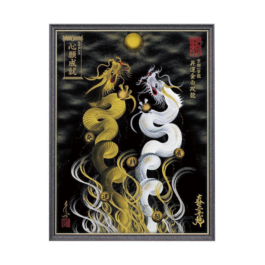 【商品の特徴】・京都一筆龍描画の種類/色彩は【26種】よりお選びいただけます<昇運龍14種(双龍5種/1体龍9種)> <守護龍10種(双龍2種/1体龍8種)> <縁結び龍2種(双龍2種)>・『京都一筆龍の御加護/御利益の象徴=胴体部分を一切途切れさせず一筆で描く動画』のQRコード印字ステッカー(2色/4サイズ)を同封お納めいたしております・描画に記載可能なお願い事は6種のご祈願内容より御選定いただけます心願成就/事業繁栄/金運上昇/健康祈願/家内安全/良縁成就・国内生産の高級額縁(デッサン額)を使用。額縁の色/機能は7種よりお選びいただけます。・龍の眼に光を宿し生気を吹き込む『龍の瞳(ラインストーン)』加工・京都一筆龍絵師手島啓輔署名、落款入り・御贈答のご利用も多く、懇切丁寧な包装