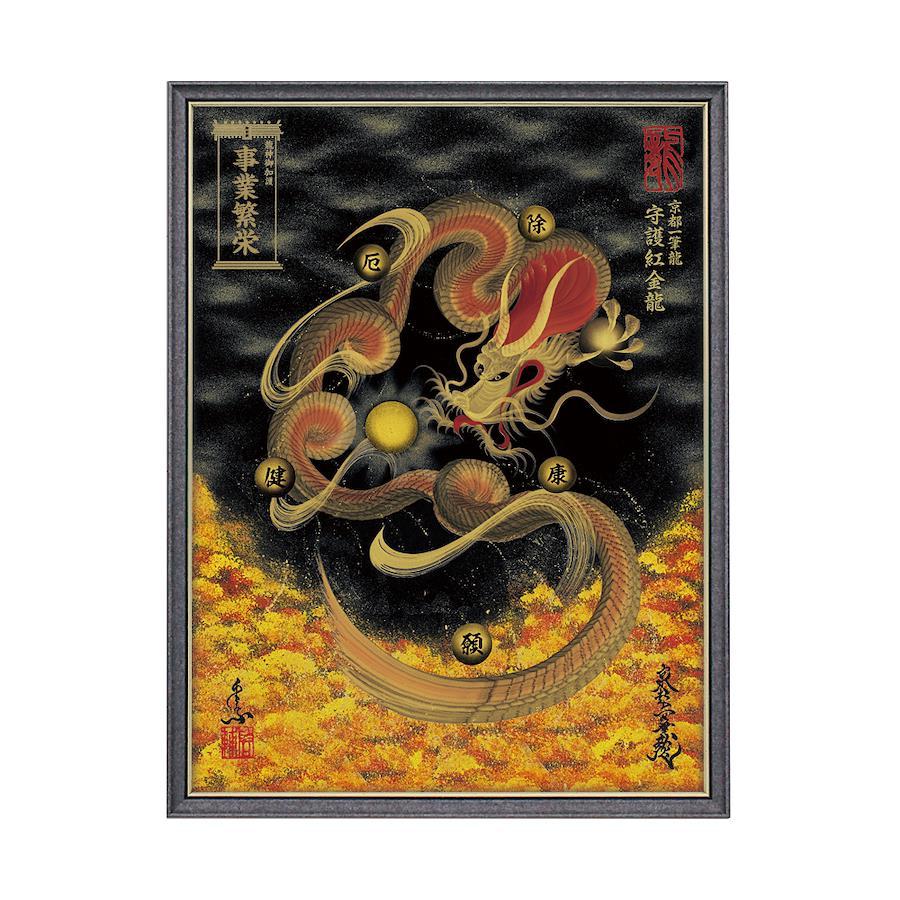 【商品の特徴】・京都一筆龍描画の種類/色彩は【26種】よりお選びいただけます<昇運龍14種(双龍5種/1体龍9種)> <守護龍10種(双龍2種/1体龍8種)> <縁結び龍2種(双龍2種)>・『京都一筆龍の御加護/御利益の象徴=胴体部分を一切途切れさせず一筆で描く動画』のQRコード印字ステッカー(2色/4サイズ)を同封お納めいたしております・描画に記載可能なお願い事は6種のご祈願内容より御選定いただけます心願成就/事業繁栄/金運上昇/健康祈願/家内安全/良縁成就・国内生産の高級額縁(デッサン額)を使用。額縁の色/機能は7種よりお選びいただけます。・龍の眼に光を宿し生気を吹き込む『龍の瞳(ラインストーン)』加工・京都一筆龍絵師手島啓輔署名、落款入り・御贈答のご利用も多く、懇切丁寧な包装