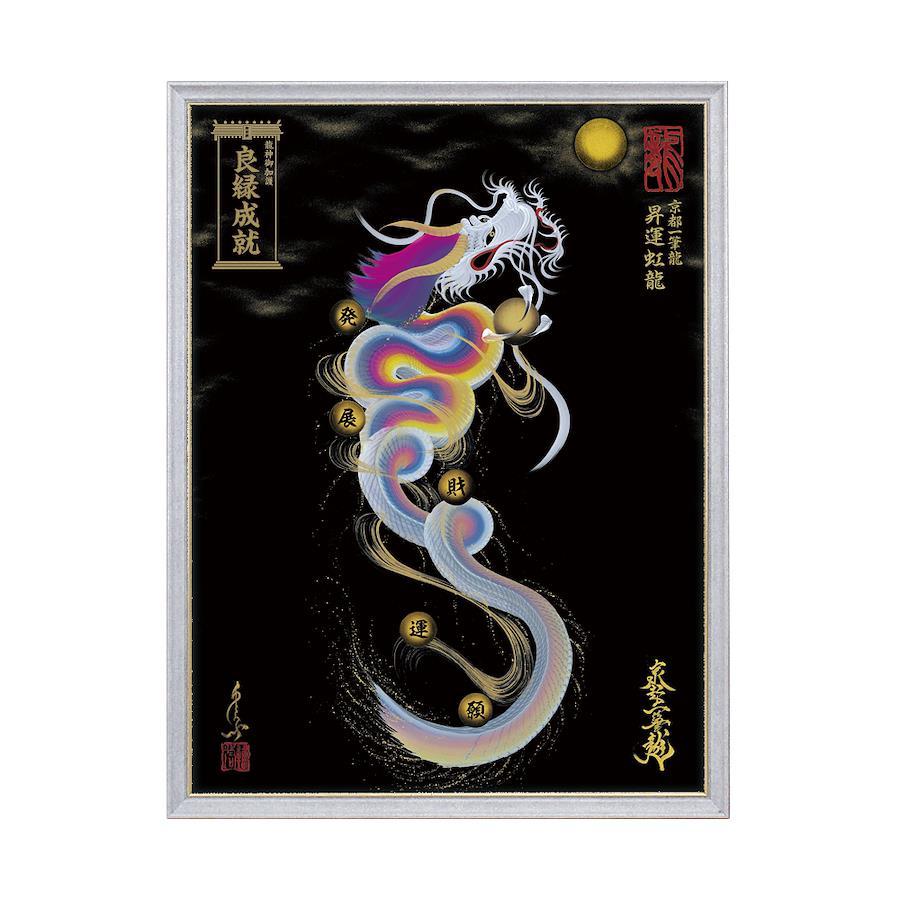 【商品の特徴】・京都一筆龍描画の種類/色彩は【26種】よりお選びいただけます<昇運龍14種(双龍5種/1体龍9種)> <守護龍10種(双龍2種/1体龍8種)> <縁結び龍2種(双龍2種)>・『京都一筆龍の御加護/御利益の象徴=胴体部分を一切途切れさせず一筆で描く動画』のQRコード印字ステッカー(2色/4サイズ)を同封お納めいたしております・描画に記載可能なお願い事は6種のご祈願内容より御選定いただけます心願成就/事業繁栄/金運上昇/健康祈願/家内安全/良縁成就・国内生産の高級額縁(デッサン額)を使用。額縁の色/機能は7種よりお選びいただけます。・龍の眼に光を宿し生気を吹き込む『龍の瞳(ラインストーン)』加工・京都一筆龍絵師手島啓輔署名、落款入り・御贈答のご利用も多く、懇切丁寧な包装
