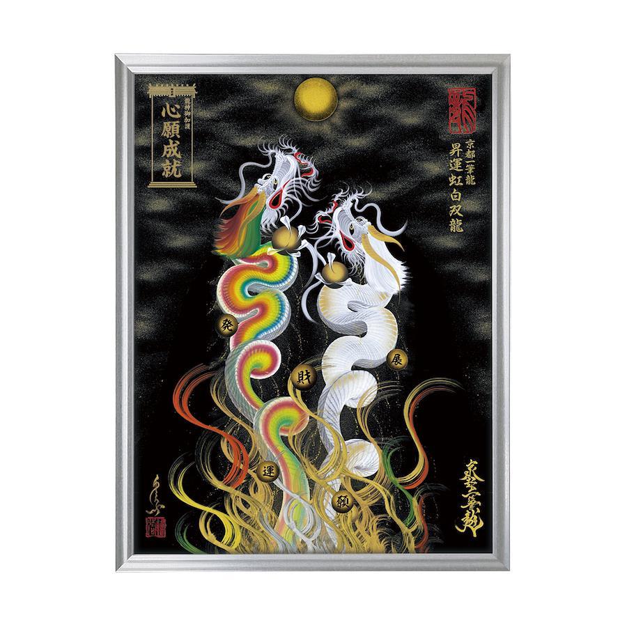 【商品の特徴】・京都一筆龍描画の種類/色彩は【26種】よりお選びいただけます<昇運龍14種(双龍5種/1体龍9種)> <守護龍10種(双龍2種/1体龍8種)> <縁結び龍2種(双龍2種)>・『京都一筆龍の御加護/御利益の象徴=胴体部分を一切途切れさせず一筆で描く動画』のQRコード印字ステッカー(2色/4サイズ)を同封お納めいたしております・描画に記載可能なお願い事は6種のご祈願内容より御選定いただけます心願成就/事業繁栄/金運上昇/健康祈願/家内安全/良縁成就・国内生産の高級額縁(デッサン額)を使用。額縁の色/機能は7種よりお選びいただけます。・龍の眼に光を宿し生気を吹き込む『龍の瞳(ラインストーン)』加工・京都一筆龍絵師手島啓輔署名、落款入り・御贈答のご利用も多く、懇切丁寧な包装