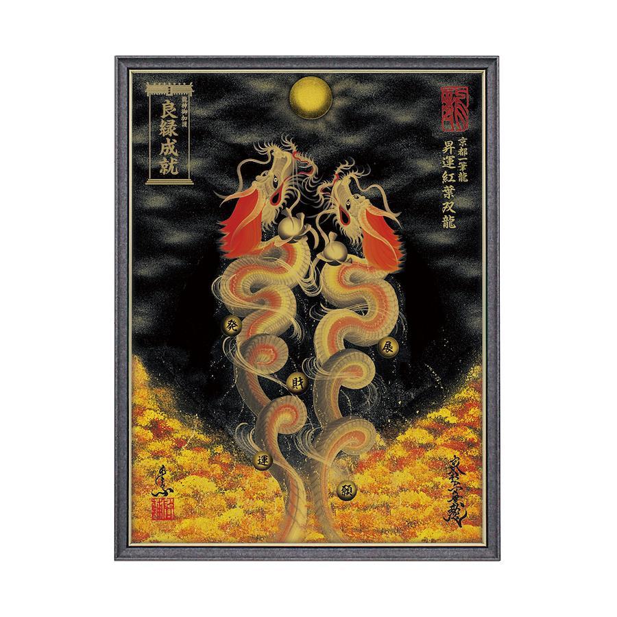 【商品の特徴】・京都一筆龍描画の種類/色彩は【26種】よりお選びいただけます<昇運龍14種(双龍5種/1体龍9種)> <守護龍10種(双龍2種/1体龍8種)> <縁結び龍2種(双龍2種)>・『京都一筆龍の御加護/御利益の象徴=胴体部分を一切途切れさせず一筆で描く動画』のQRコード印字ステッカー(2色/4サイズ)を同封お納めいたしております・描画に記載可能なお願い事は6種のご祈願内容より御選定いただけます心願成就/事業繁栄/金運上昇/健康祈願/家内安全/良縁成就・国内生産の高級額縁(デッサン額)を使用。額縁の色/機能は7種よりお選びいただけます。・龍の眼に光を宿し生気を吹き込む『龍の瞳(ラインストーン)』加工・京都一筆龍絵師手島啓輔署名、落款入り・御贈答のご利用も多く、懇切丁寧な包装