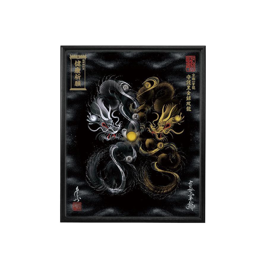 【商品の特徴】・京都一筆龍描画の種類/色彩は【26種】よりお選びいただけます<昇運龍14種(双龍5種/1体龍9種)> <守護龍10種(双龍2種/1体龍8種)> <縁結び龍2種(双龍2種)>・『京都一筆龍の御加護/御利益の象徴=胴体部分を一切途切れさせず一筆で描く動画』のQRコード印字ステッカー(2色/4サイズ)を同封お納めいたしております・描画に記載可能なお願い事は6種のご祈願内容より御選定いただけます心願成就/事業繁栄/金運上昇/健康祈願/家内安全/良縁成就・国内生産の高級額縁(デッサン額)を使用。額縁の色/機能は7種よりお選びいただけます。・龍の眼に光を宿し生気を吹き込む『龍の瞳(ラインストーン)』加工・京都一筆龍絵師手島啓輔署名、落款入り・御贈答のご利用も多く、懇切丁寧な包装