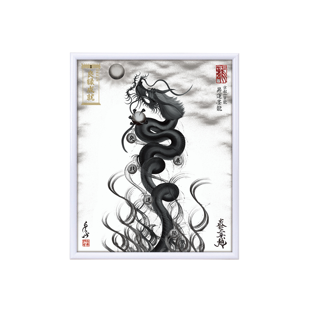 【商品の特徴】・京都一筆龍描画の種類/色彩は【26種】よりお選びいただけます<昇運龍14種(双龍5種/1体龍9種)> <守護龍10種(双龍2種/1体龍8種)> <縁結び龍2種(双龍2種)>・『京都一筆龍の御加護/御利益の象徴=胴体部分を一切途切れさせず一筆で描く動画』のQRコード印字ステッカー(2色/4サイズ)を同封お納めいたしております・描画に記載可能なお願い事は6種のご祈願内容より御選定いただけます心願成就/事業繁栄/金運上昇/健康祈願/家内安全/良縁成就・国内生産の高級額縁(デッサン額)を使用。額縁の色/機能は7種よりお選びいただけます。・龍の眼に光を宿し生気を吹き込む『龍の瞳(ラインストーン)』加工・京都一筆龍絵師手島啓輔署名、落款入り・御贈答のご利用も多く、懇切丁寧な包装