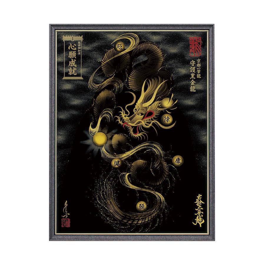 【商品の特徴】・京都一筆龍描画の種類/色彩は【26種】よりお選びいただけます<昇運龍14種(双龍5種/1体龍9種)> <守護龍10種(双龍2種/1体龍8種)> <縁結び龍2種(双龍2種)>・『京都一筆龍の御加護/御利益の象徴=胴体部分を一切途切れさせず一筆で描く動画』のQRコード印字ステッカー(2色/4サイズ)を同封お納めいたしております・描画に記載可能なお願い事は6種のご祈願内容より御選定いただけます心願成就/事業繁栄/金運上昇/健康祈願/家内安全/良縁成就・国内生産の高級額縁(デッサン額)を使用。額縁の色/機能は7種よりお選びいただけます。・龍の眼に光を宿し生気を吹き込む『龍の瞳(ラインストーン)』加工・京都一筆龍絵師手島啓輔署名、落款入り・御贈答のご利用も多く、懇切丁寧な包装