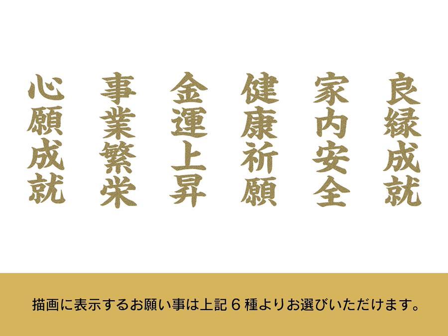 【商品の特徴】・京都一筆龍描画の種類/色彩は【26種】よりお選びいただけます<昇運龍14種(双龍5種/1体龍9種)> <守護龍10種(双龍2種/1体龍8種)> <縁結び龍2種(双龍2種)>・『京都一筆龍の御加護/御利益の象徴=胴体部分を一切途切れさせず一筆で描く動画』のQRコード印字ステッカー(2色/4サイズ)を同封お納めいたしております・描画に記載可能なお願い事は6種のご祈願内容より御選定いただけます心願成就/事業繁栄/金運上昇/健康祈願/家内安全/良縁成就・国内生産の高級額縁(デッサン額)を使用。額縁の色/機能は7種よりお選びいただけます。・龍の眼に光を宿し生気を吹き込む『龍の瞳(ラインストーン)』加工・京都一筆龍絵師手島啓輔署名、落款入り・御贈答のご利用も多く、懇切丁寧な包装