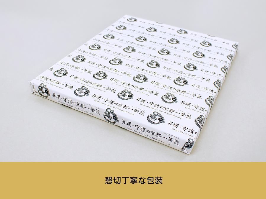 【一筆(ひとふで)龍とは】その名の通り胴体部分を一本の筆により一筆(ひとふで)で一切途切れさすことなく願い、祈り込めながら描くことで『発展・財運が途切れない』『良縁・成長が途切れず人を繋ぐ』『守護・安全が保たれ続ける』とされている龍。江戸時代(1603年~)から現在に至る約400年もの間、御加護、御利益が非常に強く龍神樣として崇め重宝され願い信じ伝え続けられています。『京都一筆龍の御加護/御利益の象徴=胴体部分を一切途切れさせず一筆で描く』