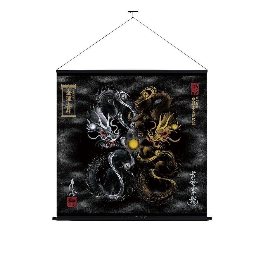 【商品の特徴】・京都一筆龍描画の種類/色彩は【26種】よりお選びいただけます<昇運龍14種(双龍5種/1体龍9種)> <守護龍10種(双龍2種/1体龍8種)> <縁結び龍2種(双龍2種)>・『京都一筆龍の御加護/御利益の象徴=胴体部分を一切途切れさせず一筆で描く動画』のQRコード印字ステッカー(2色/4サイズ)を同封お納めいたしております・描画に記載可能なお願い事は6種のご祈願内容より御選定いただけます心願成就/事業繁栄/金運上昇/健康祈願/家内安全/良縁成就・御札など添付のお祀り用マグネットを使用してお祀り(取り外し/位置変更可能)・発色が良く落ち着いた風合いの防炎スエード生地製(厚み約0.35~ ※官製郵便はがき約1.5枚程度/コピー用紙約4枚分程度)※ スエードは皮革・合成皮革ではなく専用布の名称となります。・吊り下げ用の上下軸棒付き(下部は軸先付き)※軸棒を外して飾られる場合でも、紐や止め具(画鋲、釘、ネジ等)をお使いいただけるハトメ穴付き(表面からは見えません)・丈夫で切れにくくシンプルな風合いの江戸打ち紐付き(黒/白2色)・龍の眼に光を宿し生気を吹き込む『龍の瞳(ラインストーン)』加工・京都一筆龍絵師手島啓輔署名、落款入り・御贈答のご利用も多く、懇切丁寧な包装