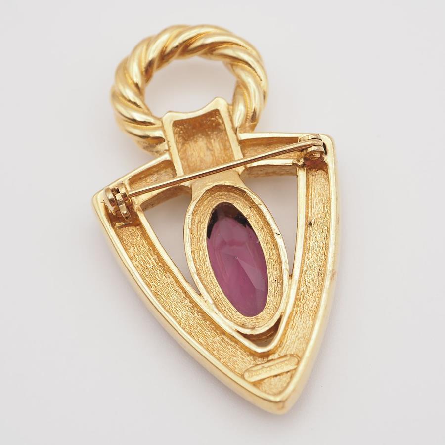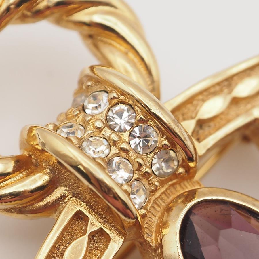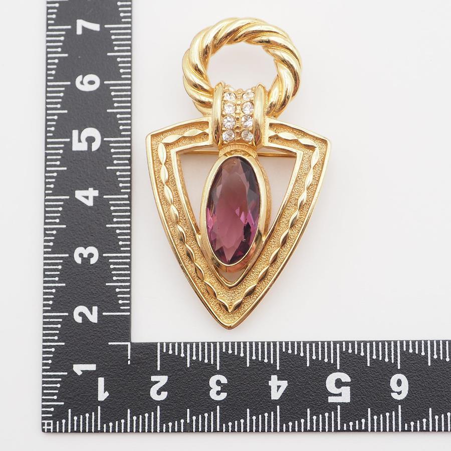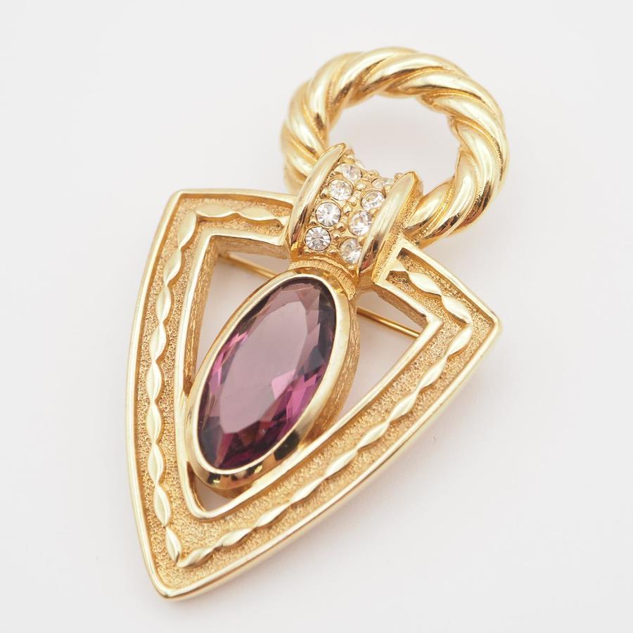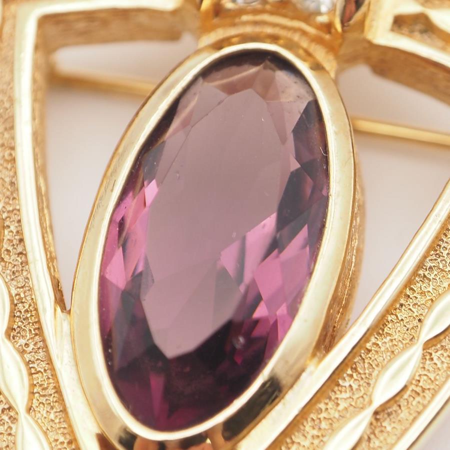 L749 Burberry Brooch with Purple Stone-like Rhinestones and Gold Design