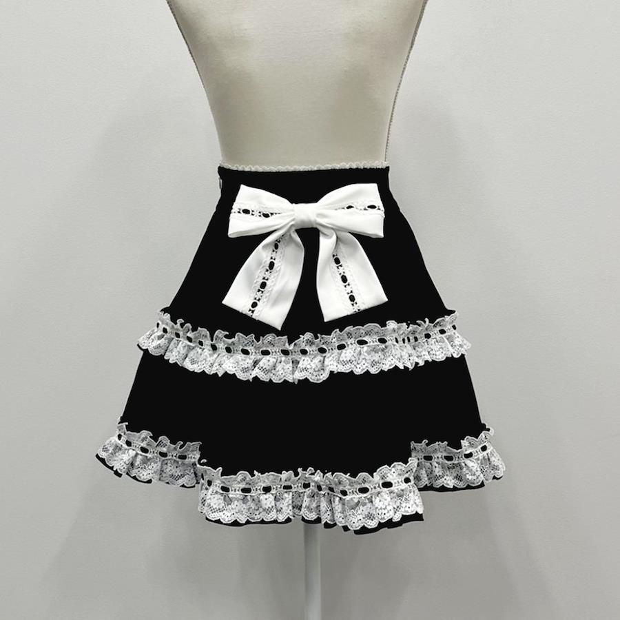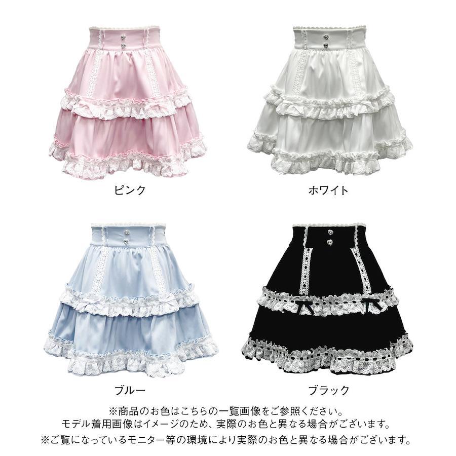 はしごレースがポイントの甘めのティアードスカート新登場?【デザイン】はしごレースがポイントの甘かわスカートウエスト部分に2つキラキラハートビジューボタンボリュームがあり、はしごレースがフリルの上に付いてるティアードスカート後ろにははしごレースがついたリボンがついたデザインになっています。【素材】しっかりとした素材になっています。本体に裏地付き、脇ポケット付きです。脇ファスナー、後ウエストゴム付きです。【コーディネート】量産型、甘めのコーデにピッタリのアイテムです。ロリータコーデにも合わせて頂くのもオススメです。《透け感》なし 《生地の厚さ》普通 《裏地》あり 《伸縮性》ややあり《生産国》中国