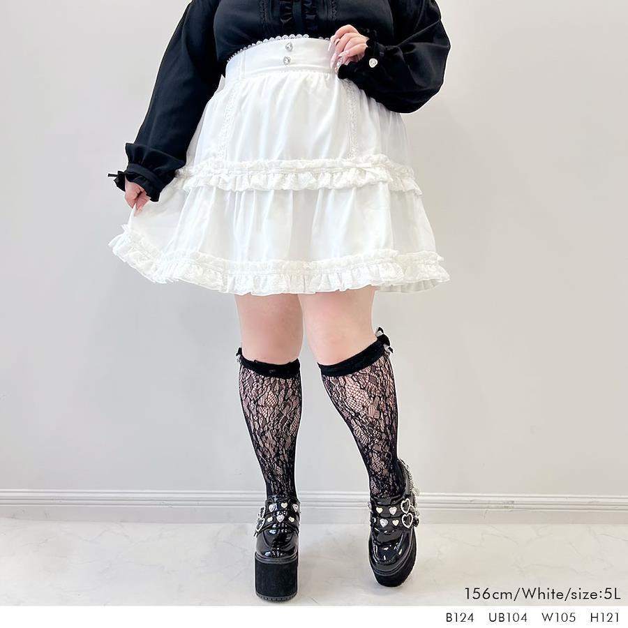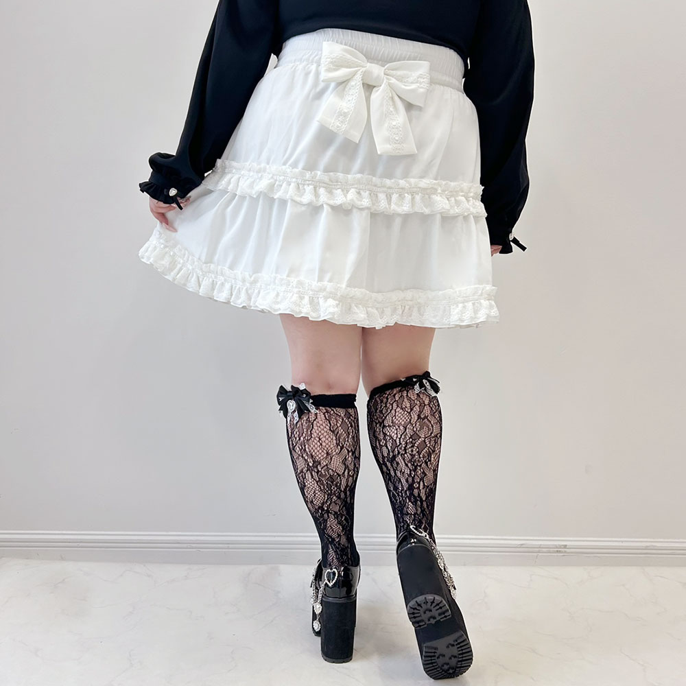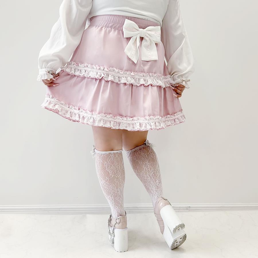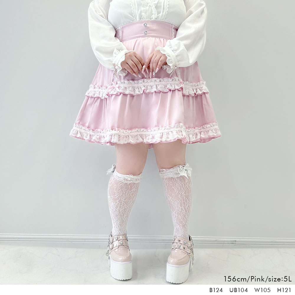 はしごレースがポイントの甘めのティアードスカート新登場?【デザイン】はしごレースがポイントの甘かわスカートウエスト部分に2つキラキラハートビジューボタンボリュームがあり、はしごレースがフリルの上に付いてるティアードスカート後ろにははしごレースがついたリボンがついたデザインになっています。【素材】しっかりとした素材になっています。本体に裏地付き、脇ポケット付きです。脇ファスナー、後ウエストゴム付きです。【コーディネート】量産型、甘めのコーデにピッタリのアイテムです。ロリータコーデにも合わせて頂くのもオススメです。《透け感》なし 《生地の厚さ》普通 《裏地》あり 《伸縮性》ややあり《生産国》中国