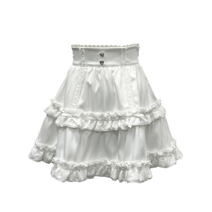 はしごレースがポイントの甘めのティアードスカート新登場?【デザイン】はしごレースがポイントの甘かわスカートウエスト部分に2つキラキラハートビジューボタンボリュームがあり、はしごレースがフリルの上に付いてるティアードスカート後ろにははしごレースがついたリボンがついたデザインになっています。【素材】しっかりとした素材になっています。本体に裏地付き、脇ポケット付きです。脇ファスナー、後ウエストゴム付きです。【コーディネート】量産型、甘めのコーデにピッタリのアイテムです。ロリータコーデにも合わせて頂くのもオススメです。《透け感》なし 《生地の厚さ》普通 《裏地》あり 《伸縮性》ややあり《生産国》中国