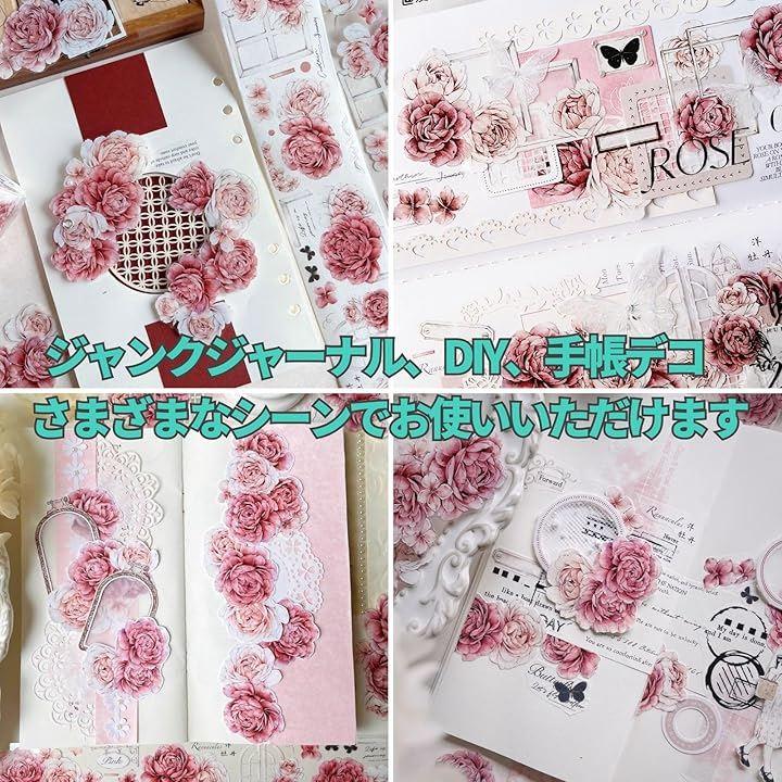 「素材」PET:光沢のある白インク剥離紙「サイズ」(薔薇、ブルー)1巻55mmx5m、1ループ約100cm (牡丹、ピンク)1巻60mmx6m、1ループ約150cm