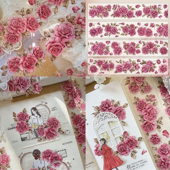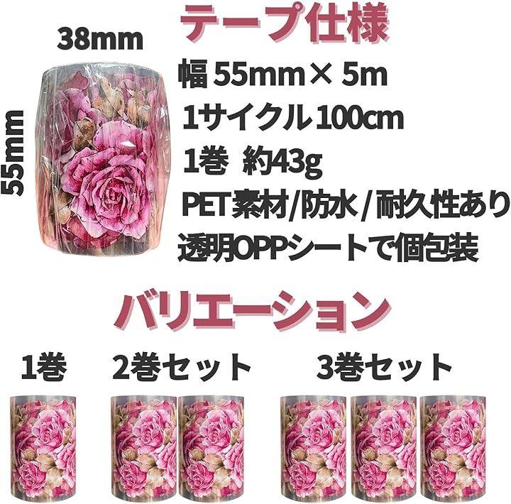 華やかな大輪バラ柄が印象的なマスキングテープです。