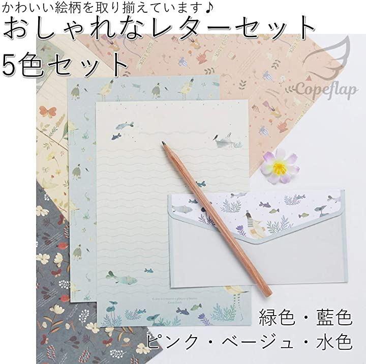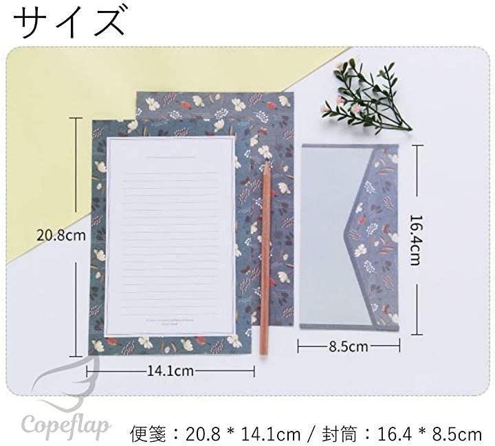 サイズ:20.8 x 14.1cm 容量:便せん6枚x5セット、封筒3枚x5セット