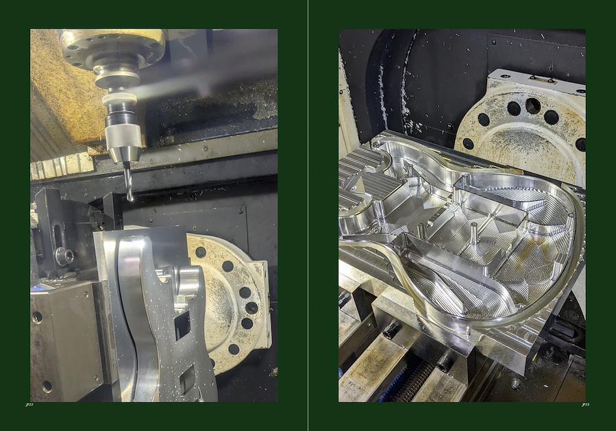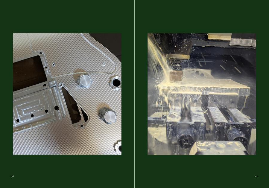 ジュラルミンA2017を使用し、強度と振動伝達性を重視しています。ボディは完全に削り出し、振動解析データを反映。トップは無塗装で、素材の質感を楽しめる仕上げ。