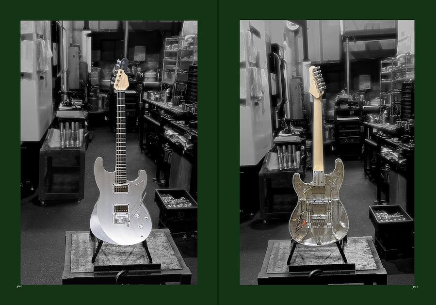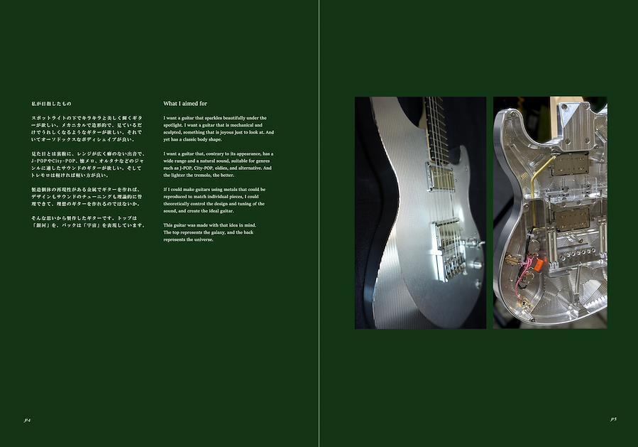 金属製ボディのギターはスポットライトの下で輝き、オーソドックスなボディシェイプで広い音域と自然な音を奏でます。J-POPやCity-POPなどのジャンルに適したサウンドを重視。