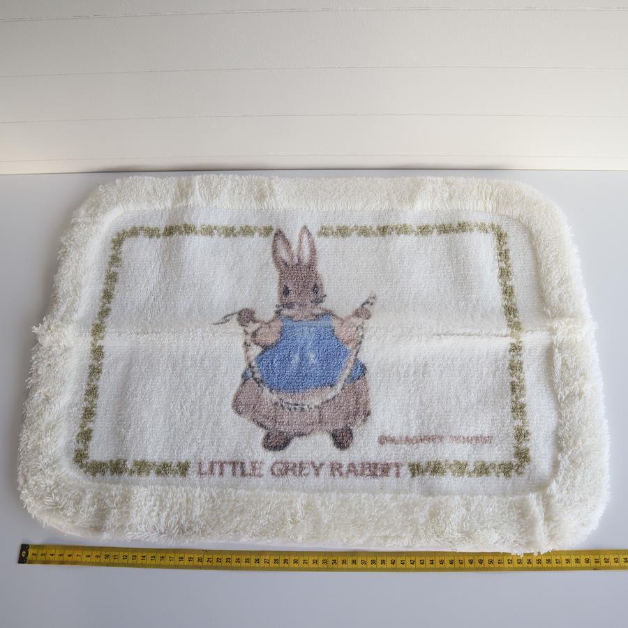 絵本シリーズで知られる「LITTLE GREY RABBIT(リトルグレイラビット)」のキャラクターマットです。ふわふわとした縁取りが可愛らしく、子供部屋や玄関、バスマットとしても使いやすい柔らかい質感の室内マットです。箱が付属しているためプレゼント用途にもおすすめです。