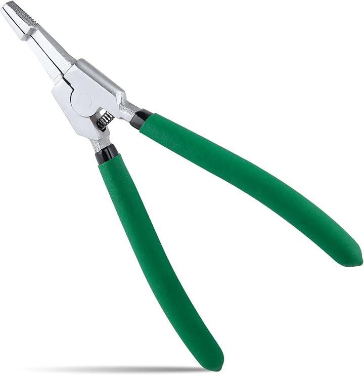 テクスチャー加工が施された幅広のアゴのプライヤーは、頑丈な耳なしサークリップに適している。