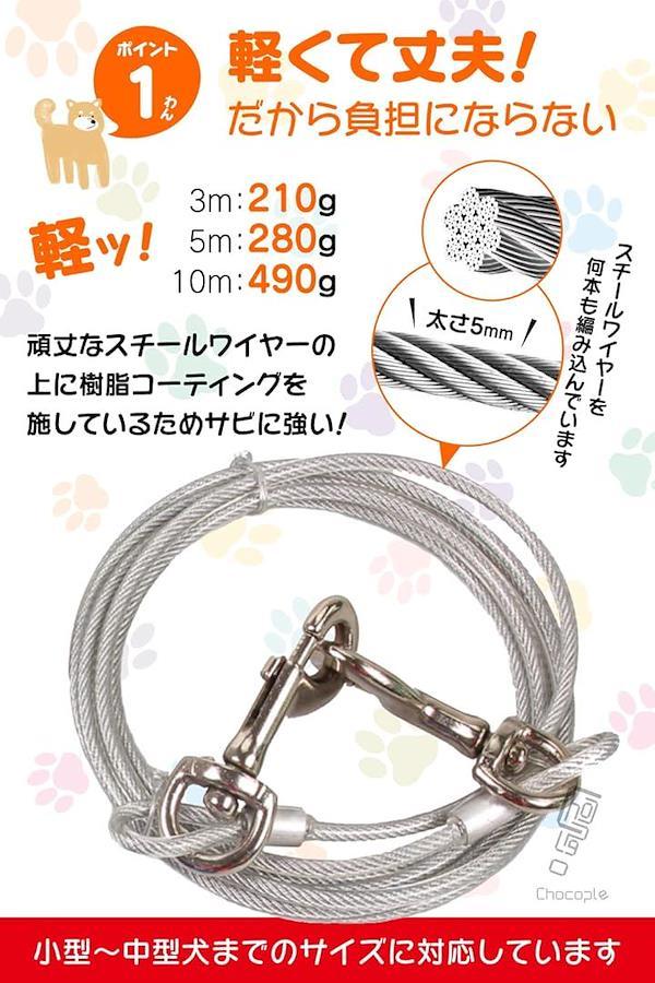 ステンレスを樹脂でコーティングした丈夫なケーブルで、引っ張り衝撃から愛犬の首を守るショックレス機能付きです。