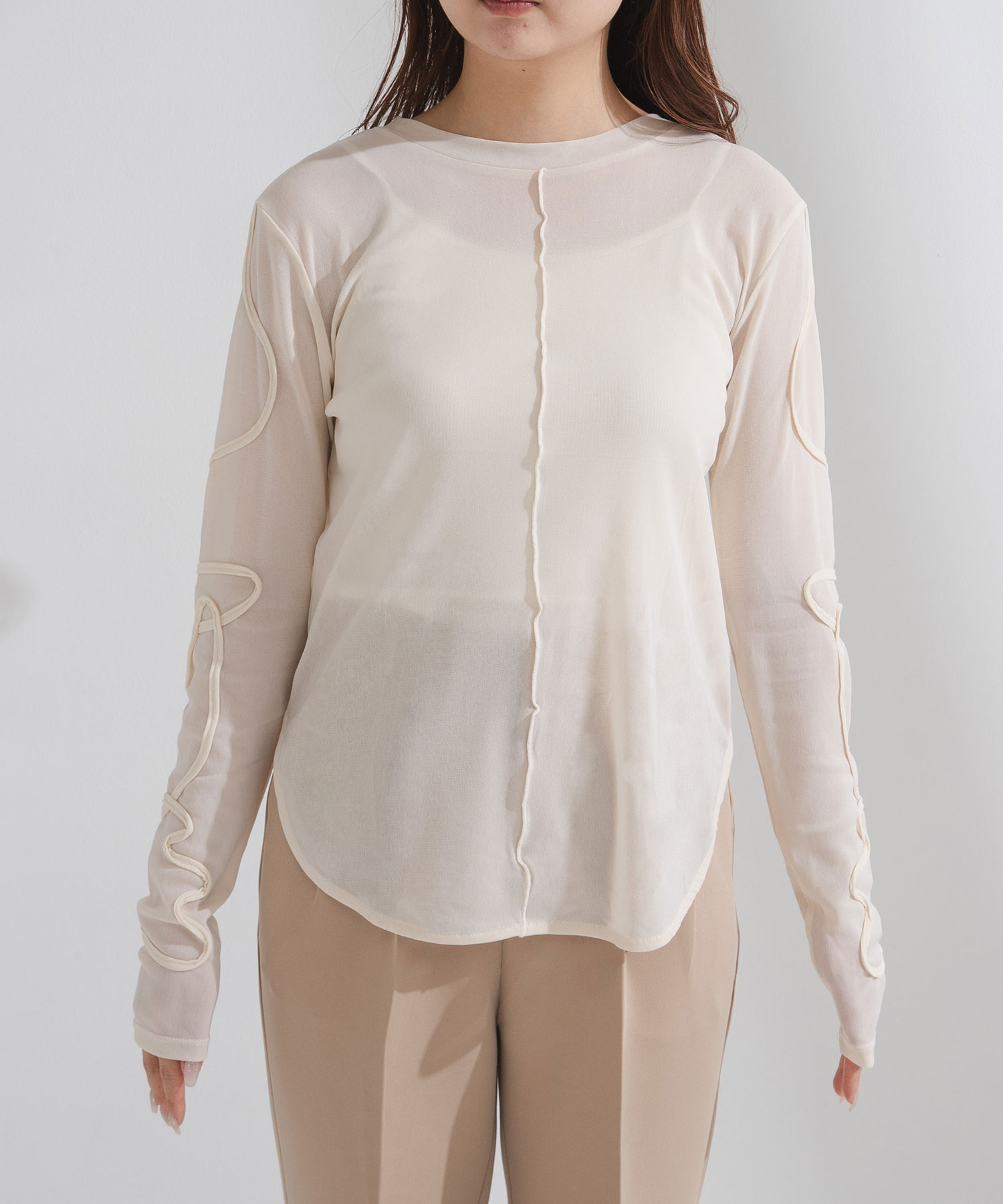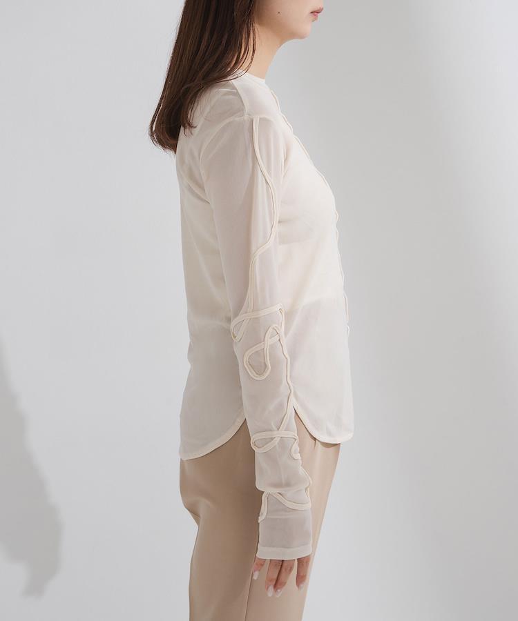 ループリボンデザインが目を引くトレンドコーデを楽しめるシアーデザイントップス