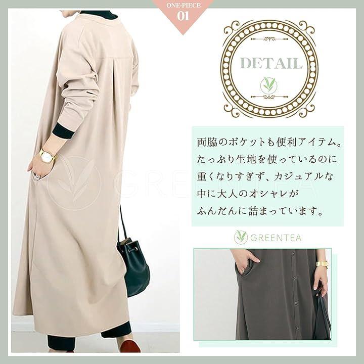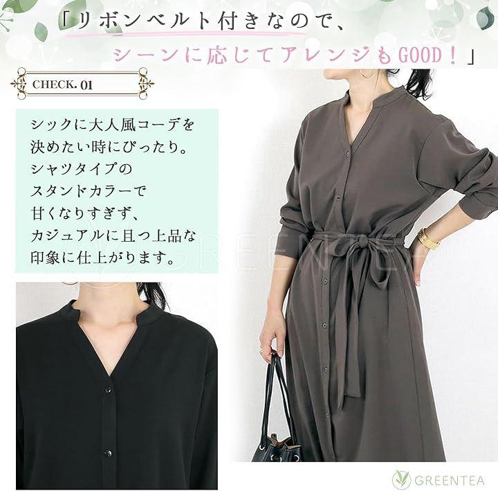 しっかり目の生地で透け感もなく、上質風味の前開きのシャツワンピース。