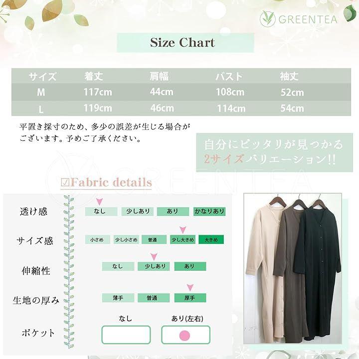 Mサイズ :着丈/117 肩幅/44 バスト/108 袖丈/52 Lサイズ :着丈/119 肩幅/46 バスト/114 袖丈/54